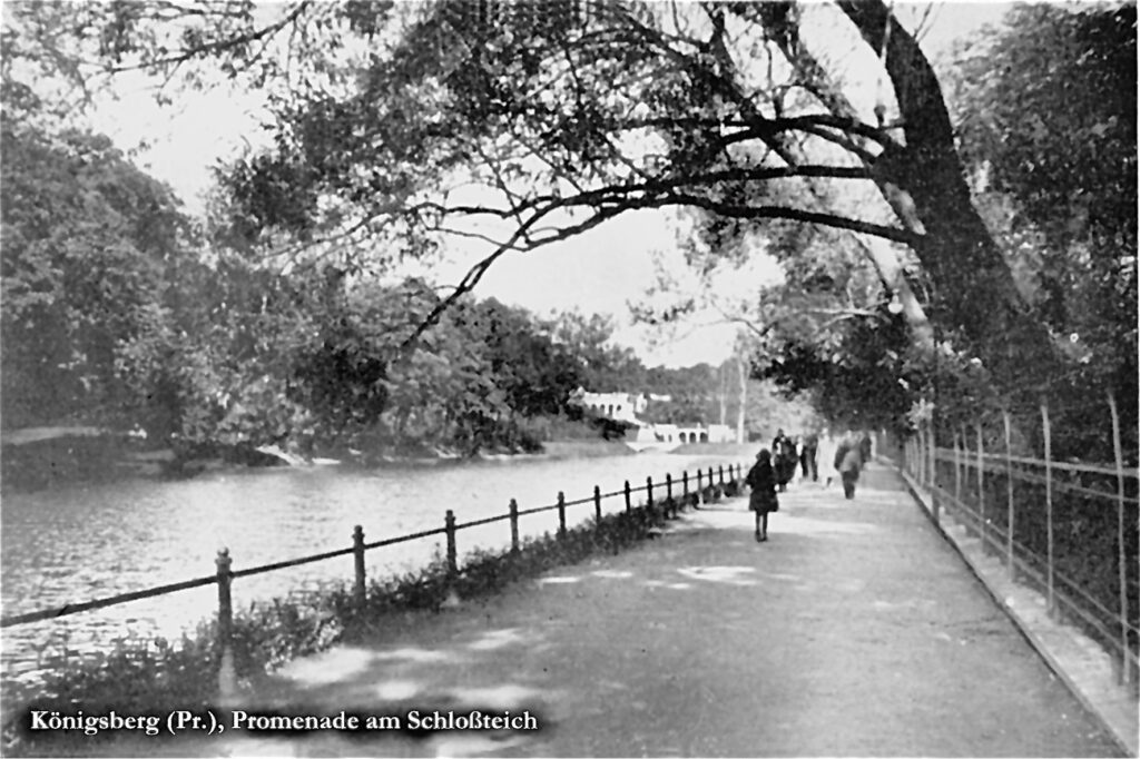 Der Schloßteich spielte in vielen Erinnerungen meiner Großeltern eine Rolle. Wie viele Königsberger zog es auch sie immer wieder dort hin. Der Spaziergang mit den Kindern um den Schloßteich herum war ein beliebter kleiner Ausflug und niemals langweilig. Man konnte Kahn fahren, die Enten und Schwäne füttern und sich im Sommer etwas Abkühlung verschaffen. Auch die Kaskaden am Nordende waren für die Kinder immer beeindruckend. Die Ostsee und das Haff waren zwar nicht sehr weit entfernt, aber eben eine kleine Reise mit Straßenbahn, Bus und/oder Bahn.
