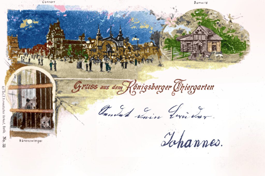 Ein Hinweis sei vorangestellt: Die amtliche Schreibweise der Stadt war bis 1936 „Königsberg i.Pr.“, danach „Königsberg (Pr.)“. Ob alle Titel auf den Postkartenmotiven original sind oder später ergänzt wurden, weil sich der Text auf der Rückseite befand, lässt sich nicht feststellen. Letztendlich handelt es sich hierbei auch nur um eine private Sammlung und kein wissenschaftliches Archiv.m