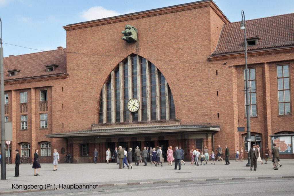 Ich habe mich bemüht, jedes Foto anhand verfügbarer Vorlagen im Internet farblich so realistisch wie möglich zu gestalten. Diese Vorlagen sind aber ausschliesslich ebenfalls nur subjektive Darstellungen, wie oben schon beschrieben. Sie liefern leider keine eindeutigen Hinweise. Königsberg wurde 1944 nahezu vollständig zerstört, nur wenige Gebäude der Vorkriegszeit stehen noch, wie z.B. der Hauptbahnhof und wertvolle Quellen, wie Gemälde angesehener Maler oder frühe Farbfotos stehen mir nicht zur Verfügung. In solchen Fällen sagt man üblicherweise: Geschaffen „nach bestem Wissen und Gewissen“.